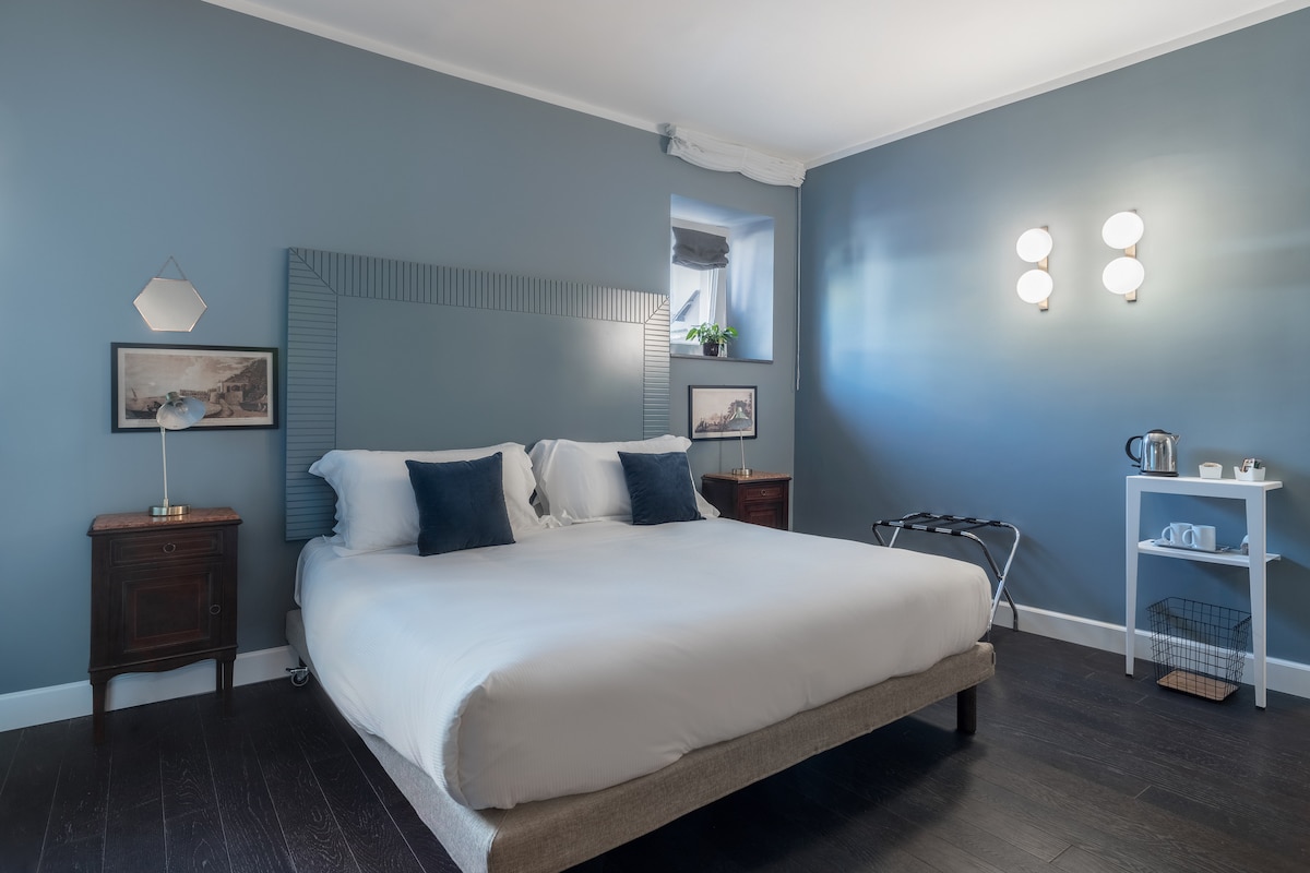Le camere di circa 25 m2 sono caratterizzate da un arredo moderno realizzato interamente con materiali ecologici nel rispetto dell'ambiente. Si trovano al piano terra, al primo, secondo e terzo piano ed affacciano sul giardino oppure sul cortile interno. - Insonorizzazione - Letto King Size Simmons - Doccia Extra Large - WI-FI a banda larga - Smart TV con connessione Wi-Fi e SKY - Cassaforte - Minibar - Aria condizionata - Telefono con linea diretta - Max. 3 persone