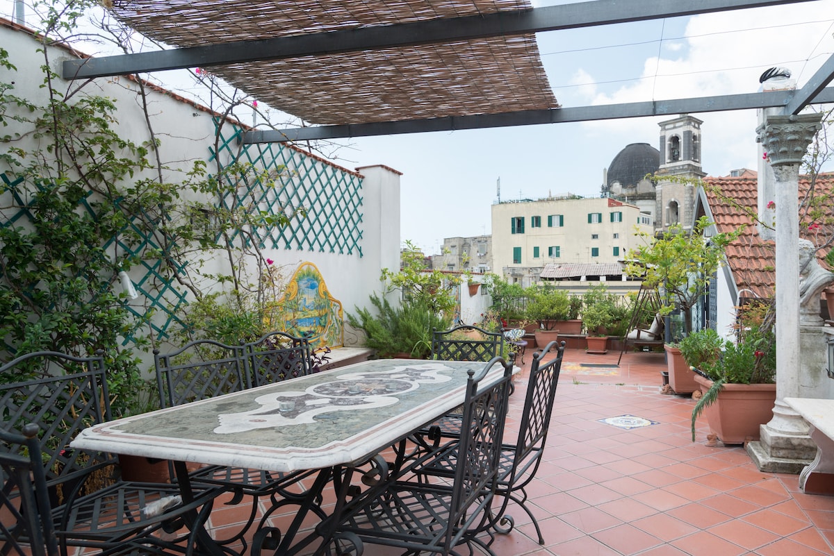 Jacuzzi Hot Tub, a large private terrace with a barbecue, and Renaissance-style furnishings are what you'll find at Terrazza Duomo, our apartment in the historic center of Naples. The apartment is well connected to the subway, and all the main tourist attractions are within walking distance.