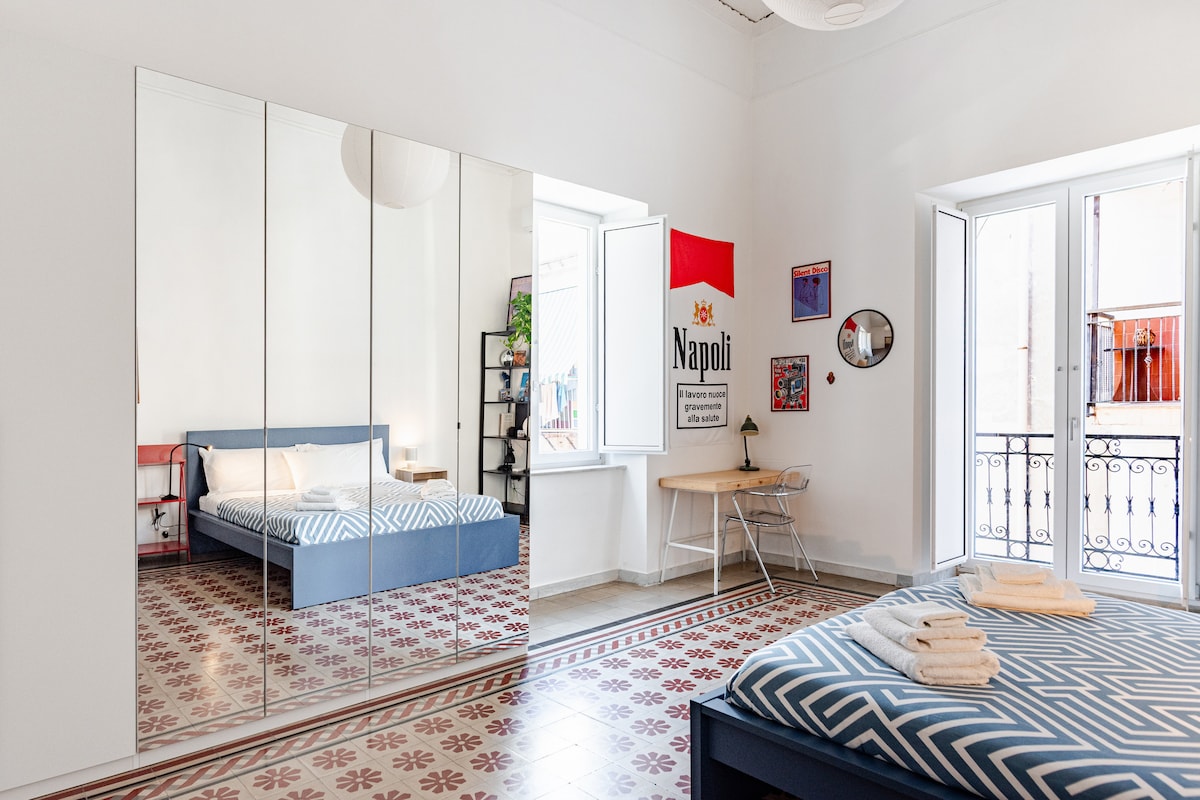 Un bellissimo appartamento completamente arredato al secondo piano di un antico edificio napoletano del 1891 con ascensore. Spazioso, luminoso e con soffitti altissimi, finestre e balcone con affaccio su una delle più vibranti e veraci zone del centro. Una grande camera da letto con letto matrimoniale King size e materasso in Memorex, guardaroba e scrivania, luminosa zona soggiorno con divano, cucina con tutto ciò che ti occorre per immergerti nella tradizione culinaria partenopea, un bagno con doccia. Tutto l'appartamento è disponibile per gli ospiti e coperto da rete internet wifi ad alta velocità gratuita. We love to entertain, help to discover the city, and make friends with solar, friendly, warm-hearted, travelers (not tourists), who love their life and who are as flexible as needed to truly experience Naples, a little less we love to host rigid and uncompromising persons, perfection maniacs or stressed tourist who think they're booking an hotel at low price. For that matter we strongly advise those kind of tourists against the imperfection of Naples and its culture. Caratteristica e autentica area nel mezzo di due tra le zone più antiche di Napoli, circondata da mercati, negozi, ristoranti e servizi di ogni tipo e a due passi da trasporti, musei e monumenti. La reale vita quotidiana a Napoli, lontano da stereotipi e scene costruite apposta per turisti che cercano esclusivamente la stessa città in ogni posto. Indubbiamente un posto frenetico (attenzione tu, delicato d'orecchie che cerca pace), ma che vale totalmente la pena di essere vissuto. E amato. Most of the thing you may wish to see or have are at hand, right around your home at a max a 15-20 minutes walk. You are surrounded with any kind of shop and popular markets where you can buy anything you need to make your stay comfortable and enjoyable. Bus stop and taxi area are at few meters from home, train station is a 10 minutes walk and both airport and port are at 20 minutes by car or public transport. As for art and monuments you got it yet! All around you have beautiful architectures, both old and new, the Botanical Garden is few steps from home and the Greek and Roman Part of Naples is at a 15 minutes walk belong to National Archeologic Museum, Madre Contemporary Museum and a really a lot more. Also with the Metro lines and Circumvesuviana (both accessible inside the train station) you can reach almost any part of the city quickly or start your trip to Pompei, Vesuvius or Sorrento, just to name few common destinations. Tutto il centro di Napoli, senza particolari eccezioni, è un luogo molto attivo e frenetico (siamo noti anche per questo :D ), il fermento popolare è parte intrinseca e caratteristica della cultura napoletana, un eterno teatro vivente. Questa realtà rappresenta per quasi tutti i turisti parte della bellezza in cui vogliono tuffarsi visitando Napoli, ma naturalmente ognuno è diverso, ha una sua storia e proprie abitudini. Se provieni da zone molto tranquille e silenziose, sai di essere intollerante al caos, il tuo sonno è tanto leggero che anche il ticchettio di un orologio può rappresentare un problema, ti suggeriamo di optare per zone più residenziali fuori da centro come l'area del Vomero, Fuorigrotta o Posillipo. Ma in questo caso sappi che ti starai perdendo il meglio :)