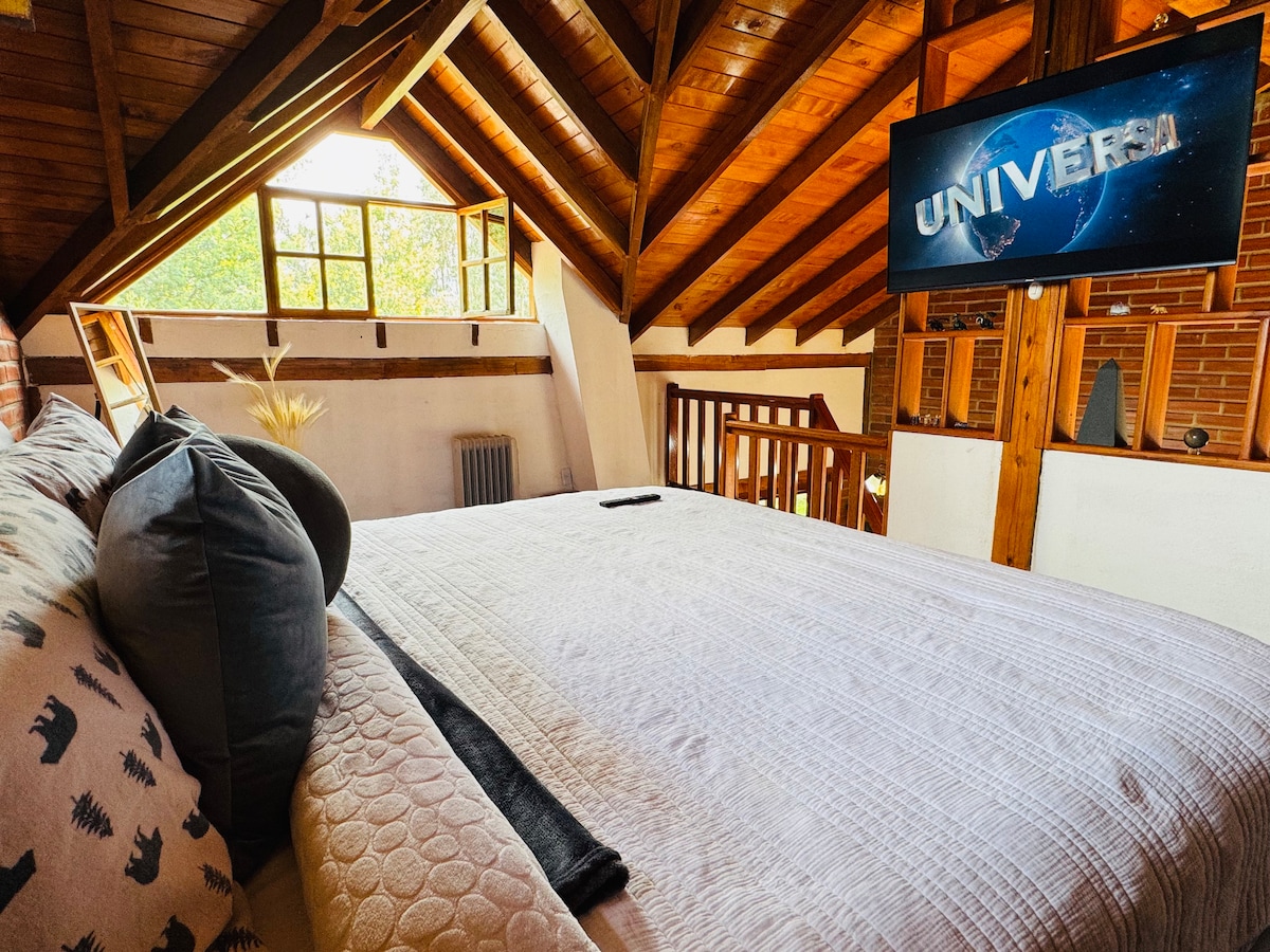 Esta cabaña se encuentra dentro de la quinta La Casa de Santiago. Es un lugar muy tranquilo, exclusivo y privado; ideal para parejas que buscan conectarse con la naturaleza y despertar con el sonido de los pajaritos. Además incluye desayuno. Escapar de la rutina, hacer un asado, mirar el atardecer, relajarse en el jacuzzi, divertirse y compartir momentos increíbles juntos. Puedes hacer uso de la piscina e hidromasaje exterior con costo adicional, pregunta por nuestros paquetes especiales.