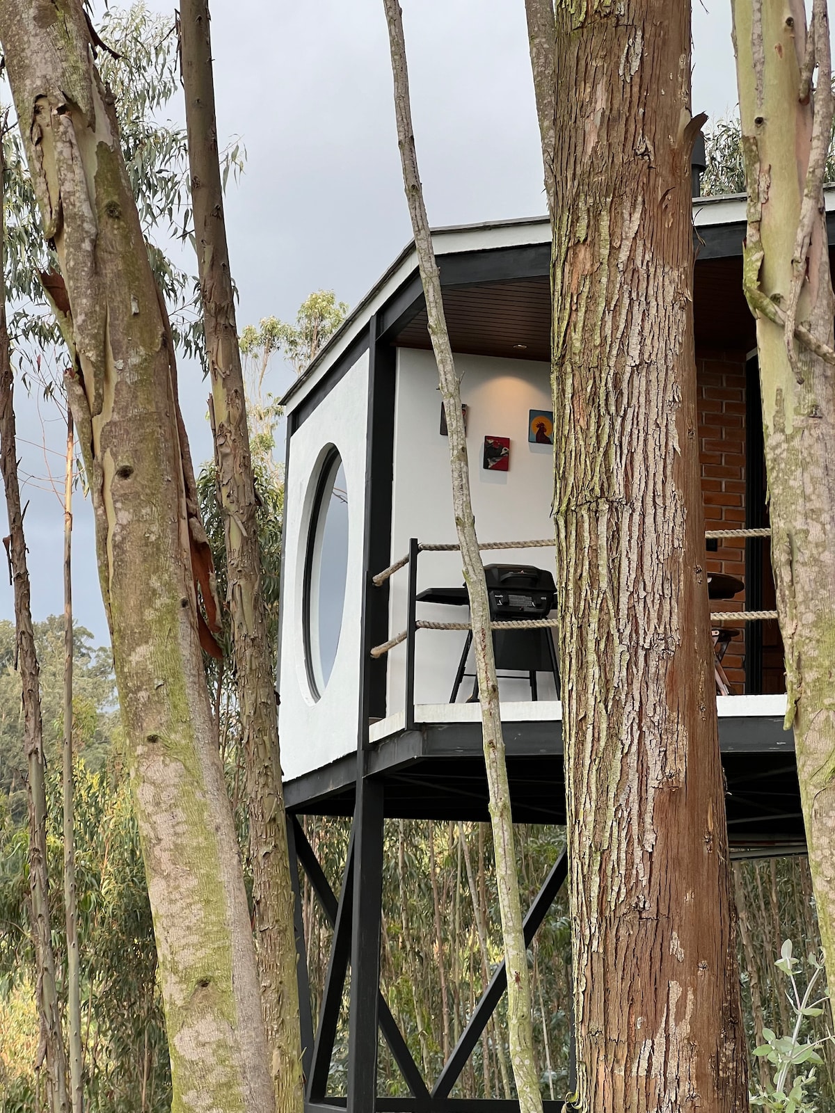 Escápate a una cabaña elevada entre los árboles, donde la arquitectura moderna se fusiona con la naturaleza. Disfruta de un amplio ventanal circular, terraza con vistas al bosque y un ambiente acogedor ideal para desconectar. Perfecta para parejas o viajeros que buscan privacidad, paz y una experiencia única en las alturas. Vive el bosque desde las copas y despierta rodead@ de tranquilidad.