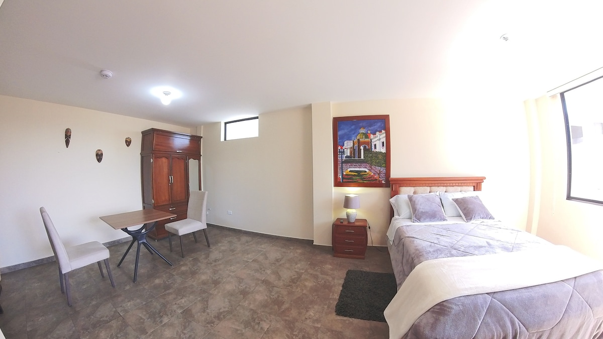 Hospedaje San Fernando busca no solo ser un hospedaje común, sino también sobresalir en lo moderno, por ello hemos domotizado la habitación, permitiéndote controlar la televisión, los focos del dormitorio y del baño, mediante la voz. El amplio espacio en el patio y el parqueadero, es de uso común para todos nuestros huéspedes, quiénes pueden hacer uso de este en cualquier momento. Recepción se encuentra disponible para todo lo que necesiten 24/7, pasarán una grata estadía.