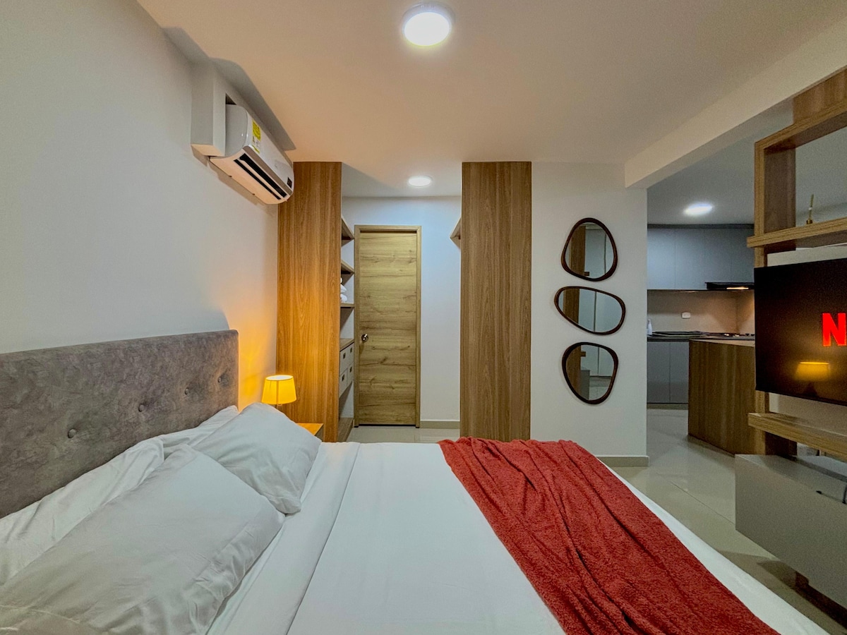 Enjoy a comfortable stay in this elegant, modern, and beautiful studio apartment located in a quiet and safe residential area. The building offers entertainment areas for an extraordinary experience. We are close to shopping centers, restaurants, bars, clinics, universities, and have easy access to public transportation just one block from Calle 5. Book now! Enjoy the community you need and live a unique experience in Cali.