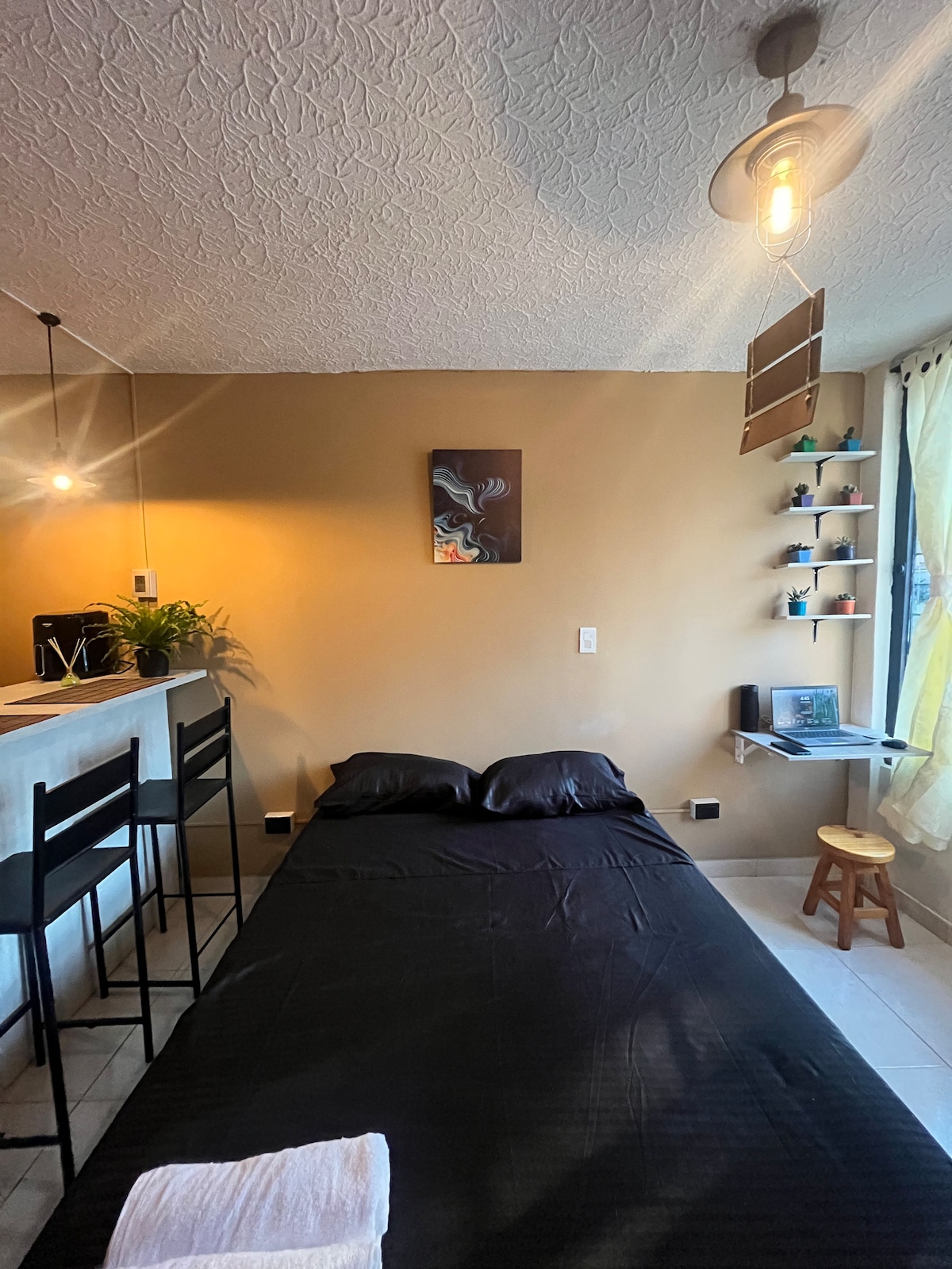 Enjoy a modern studio apartment at Miro Living, featuring a cozy design, natural light, and all the comforts for your stay. Unwind by the pool, work out in the gym, get things done in the coworking space, or watch the sunset from the 360° rooftop terrace. Located in a safe and strategic area in southern Cali, close to everything. Perfect for couples, business travelers, and anyone seeking comfort with style.
