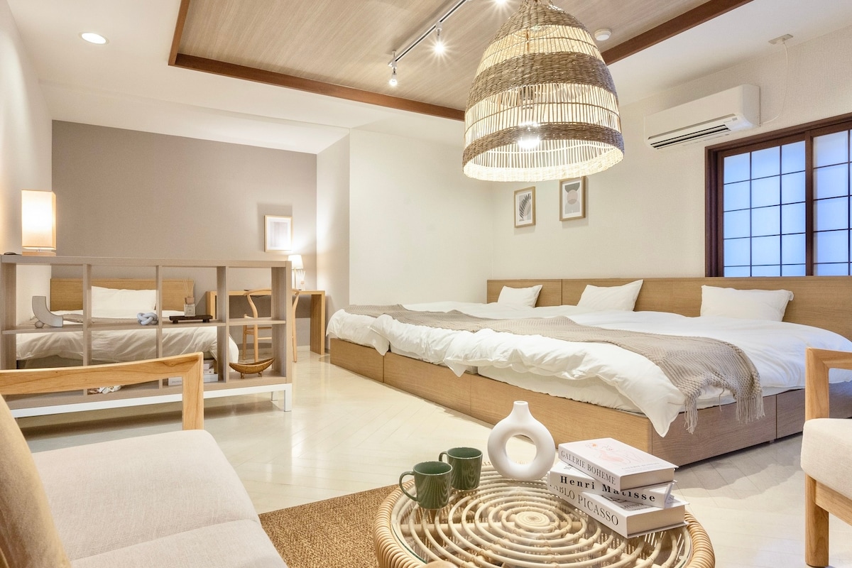 房源位于大阪今宫附近的民宿,位置优越、生活便利,步行4分钟即可到达JR今宫站,前往难波、心斋桥、通天阁、新世界等热门景点只需几站电车,非常适合来大阪自由行的旅客。周边有便利店、超市、餐馆和本地小吃街,生活氛围浓厚,是体验大阪本地风情的好选择。 民宿房型日式与现代的结合设计,适合情侣、小家庭或朋友团体入住。房间内配备厨房、简单厨具、微波炉、洗衣机和阳台,让您在旅途中也能享受家的感觉。客房整洁宽敞,布置温馨,房间内提供的阳台,适合晒衣服或简单休憩,别适合中长时间停留。 我们致力于提供安静、安全、舒适的住宿环境,入住前会提供详细的自助入住指引,也欢迎提前与客服联系,我们会尽力根据您的需求安排适合的房型。无论您是短暂停留,还是计划深入探索大阪的城市魅力,这里都会是一个性价比极高的住宿选择。
