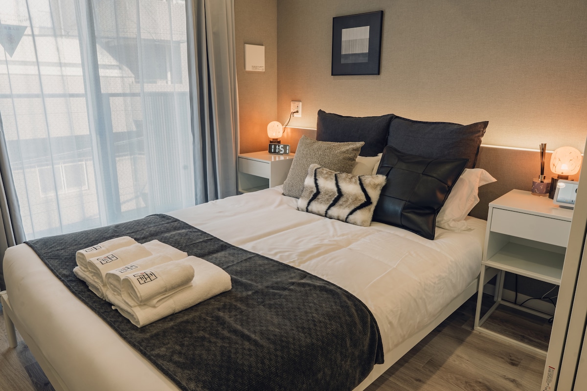 豪华公寓绝佳位置,车站步行5分钟,65㎡ 2室1厅最多8人,高速Wi-Fi,超大智能电视,洗衣烘干机