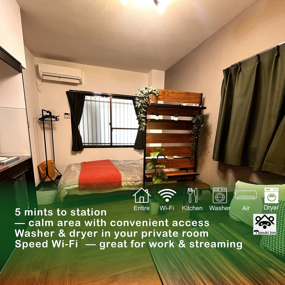 🏠 大阪市生野区新今里隐于市井的关西风情民宿,搭乘近铁线可直达日本桥/难波/京瓷巨蛋。超赞房东。 连住优惠 「沉浸式大阪生活」— 下楼接地气,回家是疗愈力 🎏 **周边宝藏** - 凌晨依旧热闹的**新今里商店街**(人均1000日圆吃垮大阪) - 当地人私藏居酒屋、钱汤 - 步行15分左右可达**生野区韩国城**(道地韩国烤肉、超市) 🏡 房源特色 - 25㎡+现代化设备/高速WiFi/洗衣机 - 房东备齐:微波炉/电磁炉/冰箱 - 贴心细节:24小时自助入住 ❗ 真诚提示 - 房间面积25㎡(典型日式紧凑户型,但布置合理) - 近商业街(低楼层房偶有市井声,备有静音耳塞) 👇 预订须知 -在您入住期间,每位房客都会提供一条洗脸毛巾和一条浴巾。您也可以随时使用洗衣机来清洗衣物。