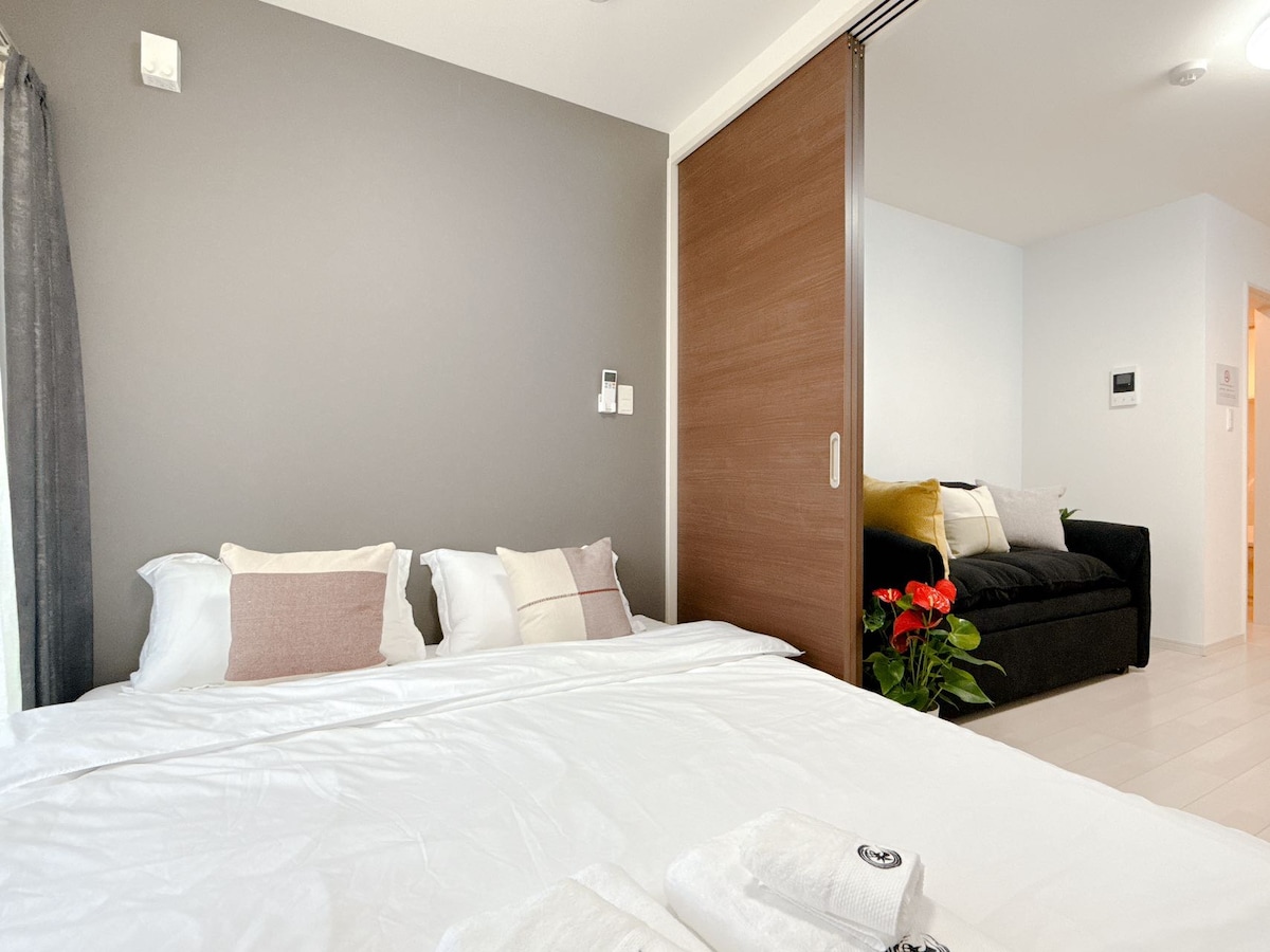 新大宮駅から徒歩3分、アクセスに優れた立地。 2022年完成の新築マンションの一室を使用しているので、清潔で快適な空間をお届けいたします。長期滞在に必要な設備も充実しており、家電製品・調理用具・寝具・掃除用具・Wi-Fiも完備していますので、ご自宅のような快適な生活をお過ごしいただけます。日本の一般的なアパートでの暮らしを体験できます。 マンションの入り口とは別の通路から出入りするため、お客様のプライバシーが守られており、安心してお過ごしいただけます。駅前に位置するにもかかわらず、防音性に優れた室内は静かで快適です。近隣には多数の飲食店があり、グルメも満喫できます。奈良観光の拠点としても最適です。当民泊での快適な滞在をお約束いたします。
