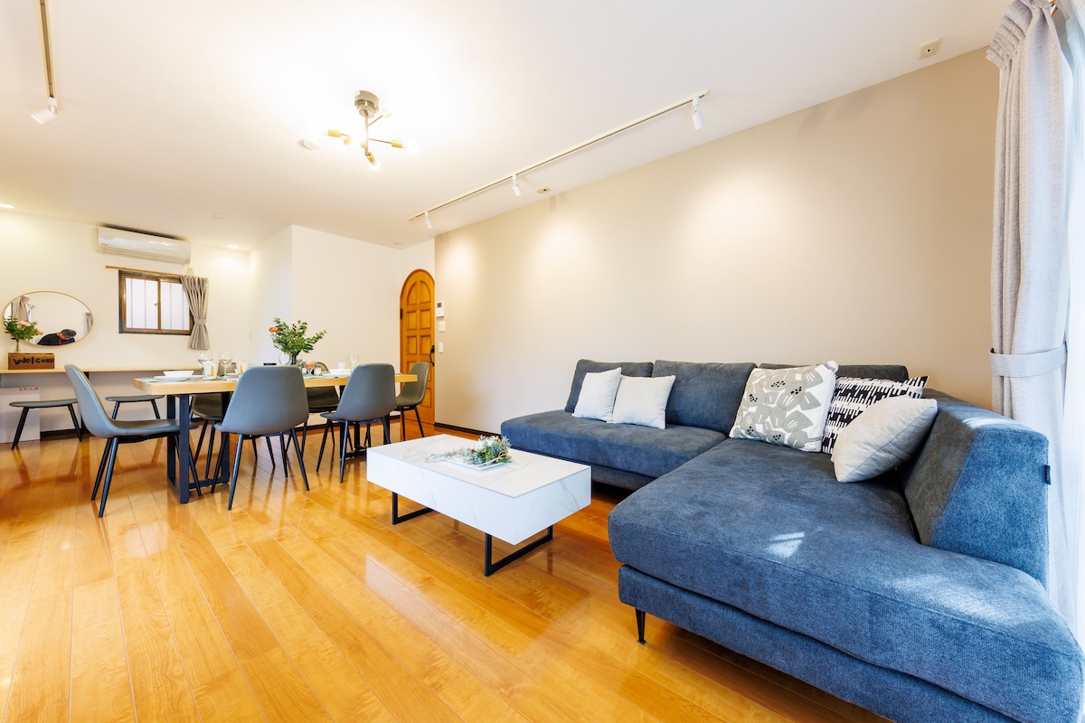 2025年11月盛大开业✨ 整栋包租民宿“Private stay 樱与夕阳”,面积115㎡,位于奈良站附近安静的住宅区,环境舒适宁静,私密性高,最多可入住12人,非常适合家庭出游、三代同堂或好友结伴旅行。 步行5分钟可达近铁新大宫站,步行12分钟可达JR奈良站。搭乘电车约40分钟即可轻松前往大阪难波和京都,无论是奈良深度游,还是关西多城市周游,都十分便利,是理想的观光据点。 房源配备宽敞明亮的客厅餐厅、设备齐全的厨房、日式榻榻米房、独立儿童房、投影仪娱乐设备,以及两处舒适的木质露台空间,让您在旅途中也能像在家一样放松自在。整栋包租保证充足的私人空间,适合聚会、用餐与休闲。 周边生活设施完善,步行范围内有便利店、各类餐厅和超市,日常采购十分方便。这里环境自然安静,偶尔还能在门前看到奈良小鹿经过。春季可步行前往附近的佐保川欣赏绵延的樱花美景。非常适合家庭、团体、长住及远程办公旅客选择。