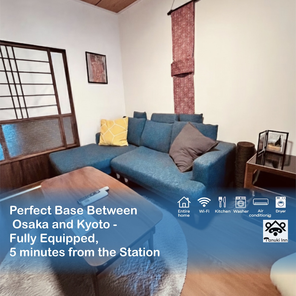 Welcome to Tanuki Inn Hanare – a cozy 33㎡ terrace house, just 4 minutes from Neyagawashi Station. Fully renovated with a raised ceiling, perfect for solo travelers or couples. Washer-dryer, Mirable shower head, and basic amenities included. Kyoto and Osaka are about 40 minutes away. 50% off for long-term stays. If Tanuki Inn is also available, we can host up to 8 guests nearby. Enjoy a peaceful stay in a convenient location!