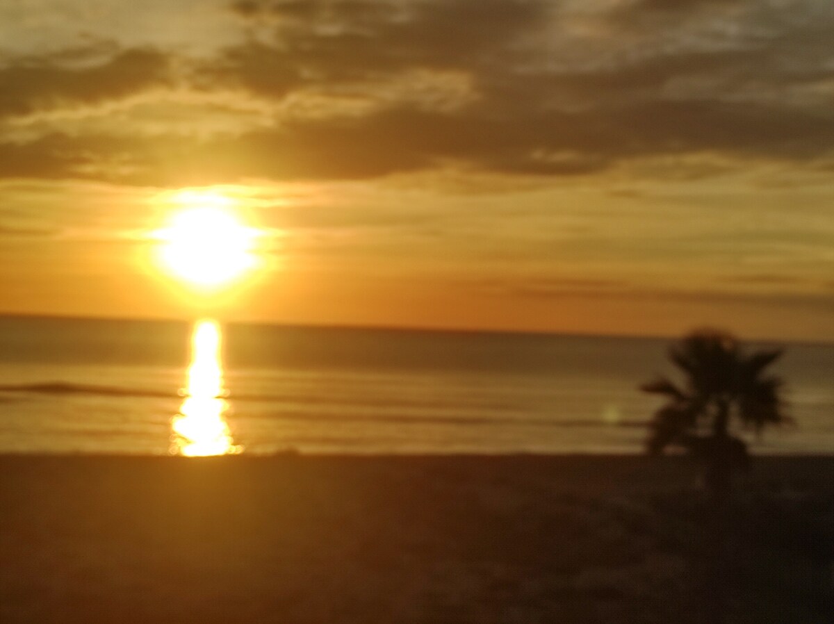 In first line, the fine sandy beach and the Mediterranean sea at your feet. A fully equipped, air-conditioned 100m2 flat with a private parking space (with the possibility of parking two cars). Mélanie will welcome and guide you. An ultra-modern kitchen with terrace, solarium and a 360° view. Between the sea and the Clape, take the time to rest and enjoy the beauty offered by nature.
