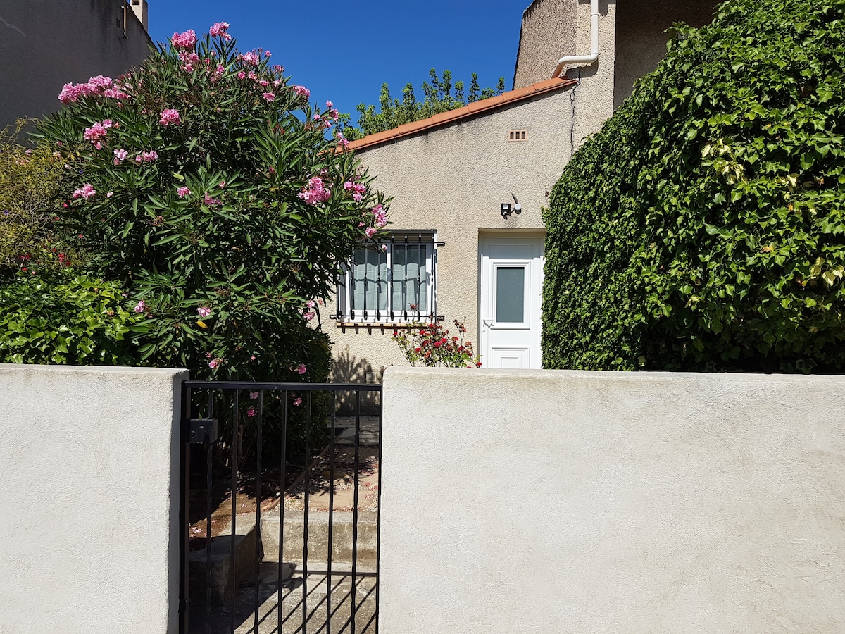Maisonnette à 5 min à pied du centre ville de Narbonne et à 12 km de la mer en voiture. Située dans un quartier résidentiel, elle possède une sortie donnant sur une cour ombragée offrant la possibilité de manger dehors et de se prélasser au calme. Les équipements proposés assurent une bonne qualité d'hébergement. Elle est équipée d'une climatisation. Les draps et les serviettes sont fournis Location pour 2 nuits minimum. Possibilité de se garer devant le logement sans aucun problème.