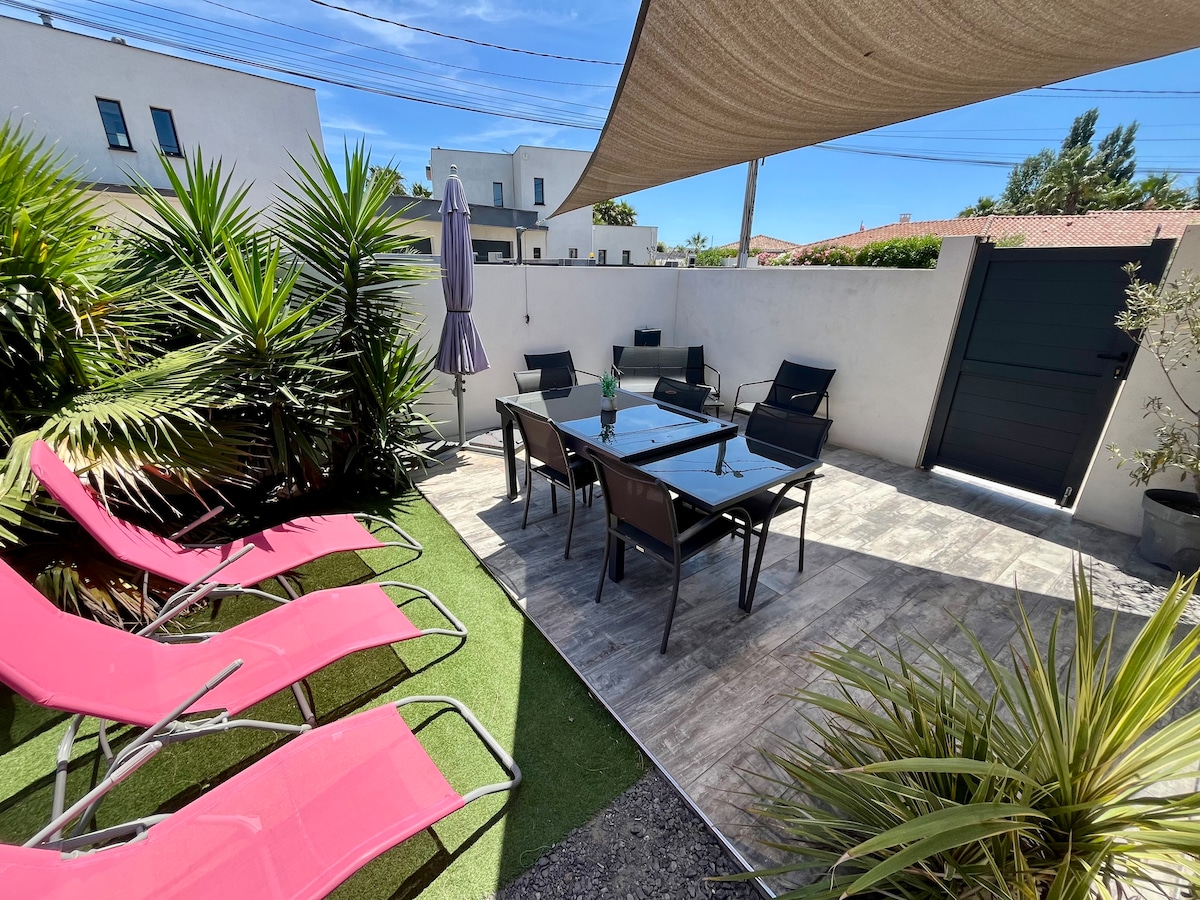 超级阴凉单间公寓 + 花园 - 距离海滩 100 米