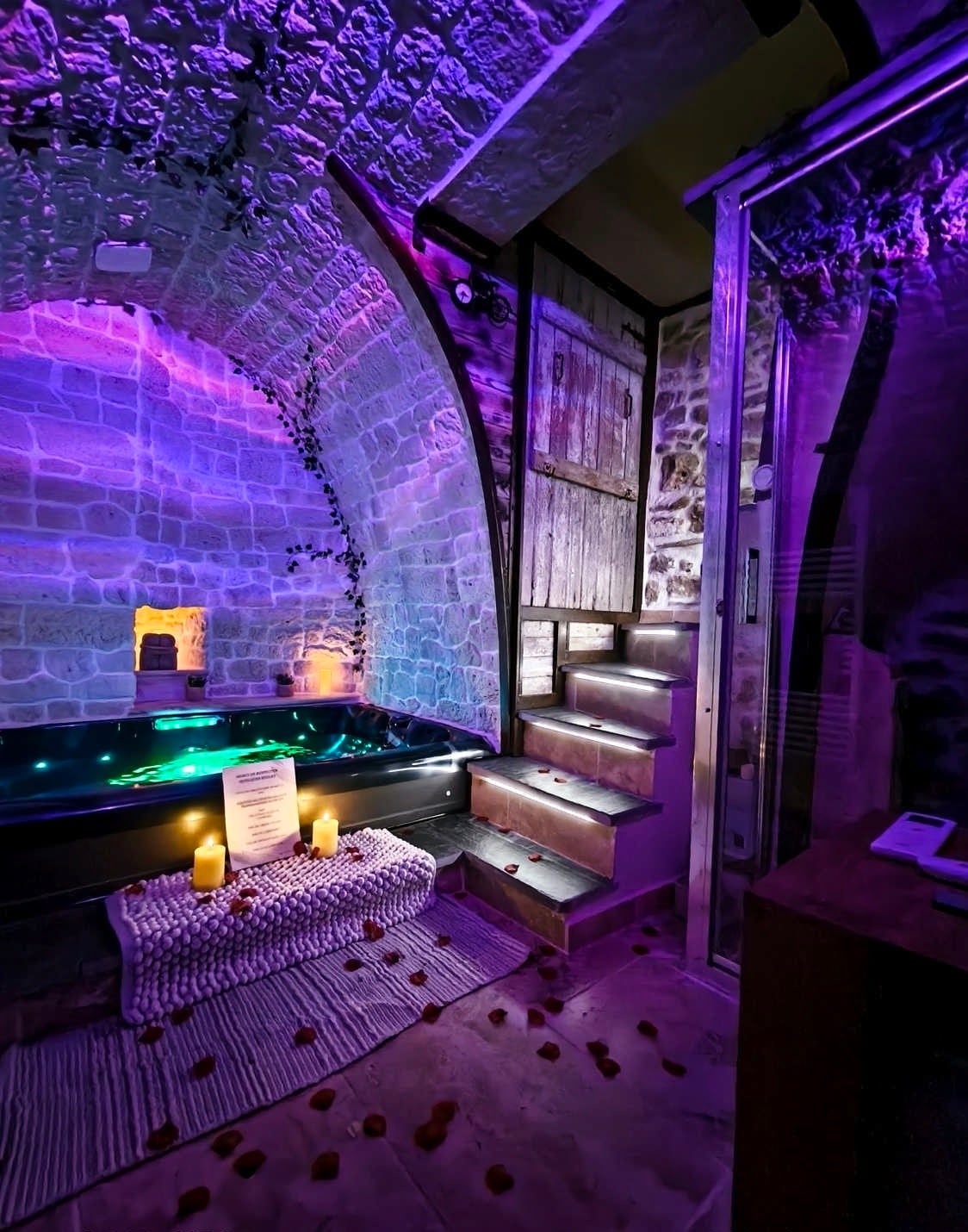 Loveroom atypique avec jacuzzi privé, petit déjeuner inclus, Netflix, parking gratuit, clim & wifi. > Options : sauna, plateau apéro, kit coquin… > 1er étage : kitchenette équipée & coin repas cosy. > 2e étage : suite avec literie confort, douche italienne. > À 15 min des plages (Gruissan, Narbonne, St Pierre), au pied du massif de la Clape. > À 10 min des Grands Buffets. > Accès rapide : 45 min Perpignan, 50 min Carcassonne, 1h Montpellier, 1h30 Toulouse. option payable via airbnb