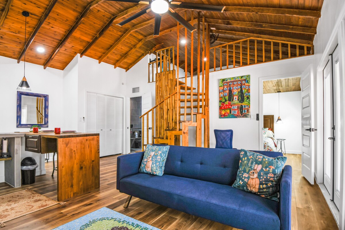 Kick back & relax in this cozy, private guesthouse featuring a fenced outdoor space with covered seating, electric grill, yard games & a fire pit. The guesthouse includes a king-size bed, full kitchen, laundry, 2 smart TVs & ample parking for your boat Located just 3.5 miles from Moss Park, where you can enjoy fishing, boating, wildlife, walks, & playground. Close to Lake Nona, Orlando Airport, & the USTA campus. Easy access to highways, with most Orlando attractions within a 40-minute drive.