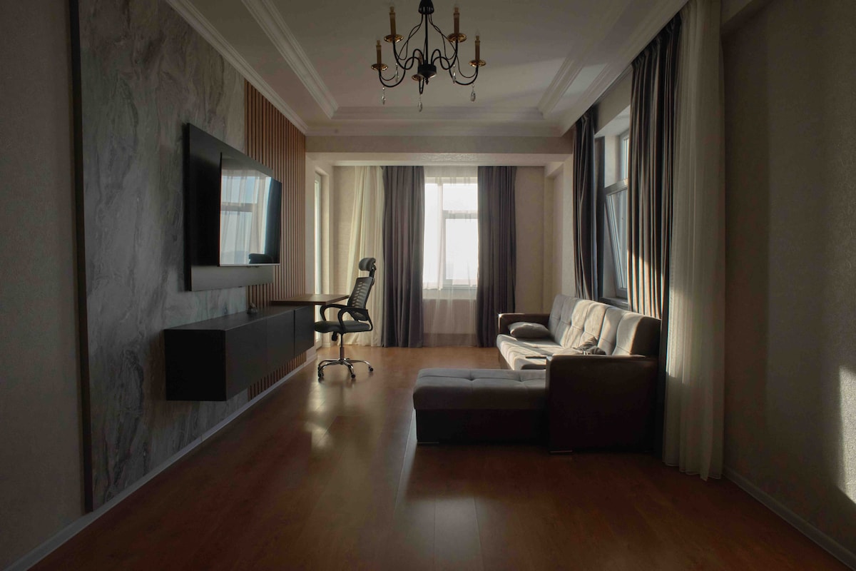 Элитная квартира у моря в престижном районе Баку. Насладитесь прекрасным видом с балкона или расслабьтесь в уютной гостиной. Рядом с домом множество ресторанов, кафе, магазинов и развлечений. Квартира оснащена всем необходимым для комфортного проживания: удобная кровать, раскладной диван, телевизор, кондиционер, кухня со всей необходимой посудой и бытовой техникой, ванная комната с душем и стиральной машиной. В квартире есть бесплатный Wi-Fi что позволяет оставаться на связи и работать удаленно.
