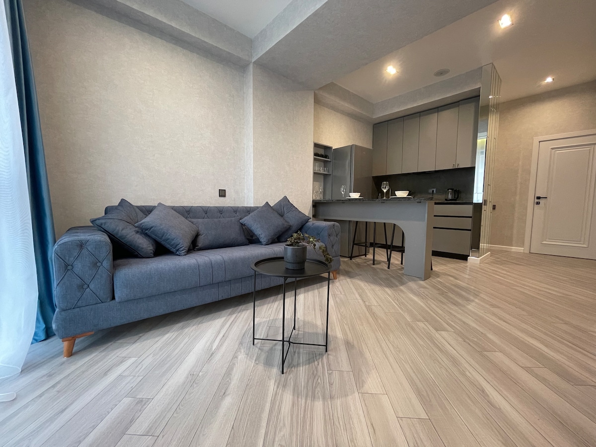 New modern studio apartment (27 m²) located in the Melisa Residence complex, just a 3-minute walk from the metro station. The city center is only 4 metro stops away. The spacious and comfortable sofa bed easily accommodates two people. The apartment is fully equipped for a cozy stay and includes: gas and electric stove mini refrigerator heating air conditioner hairdryer iron washing machine TV channels available in English, Russian, Turkish, German, French, Italian, Arabic, and other languages