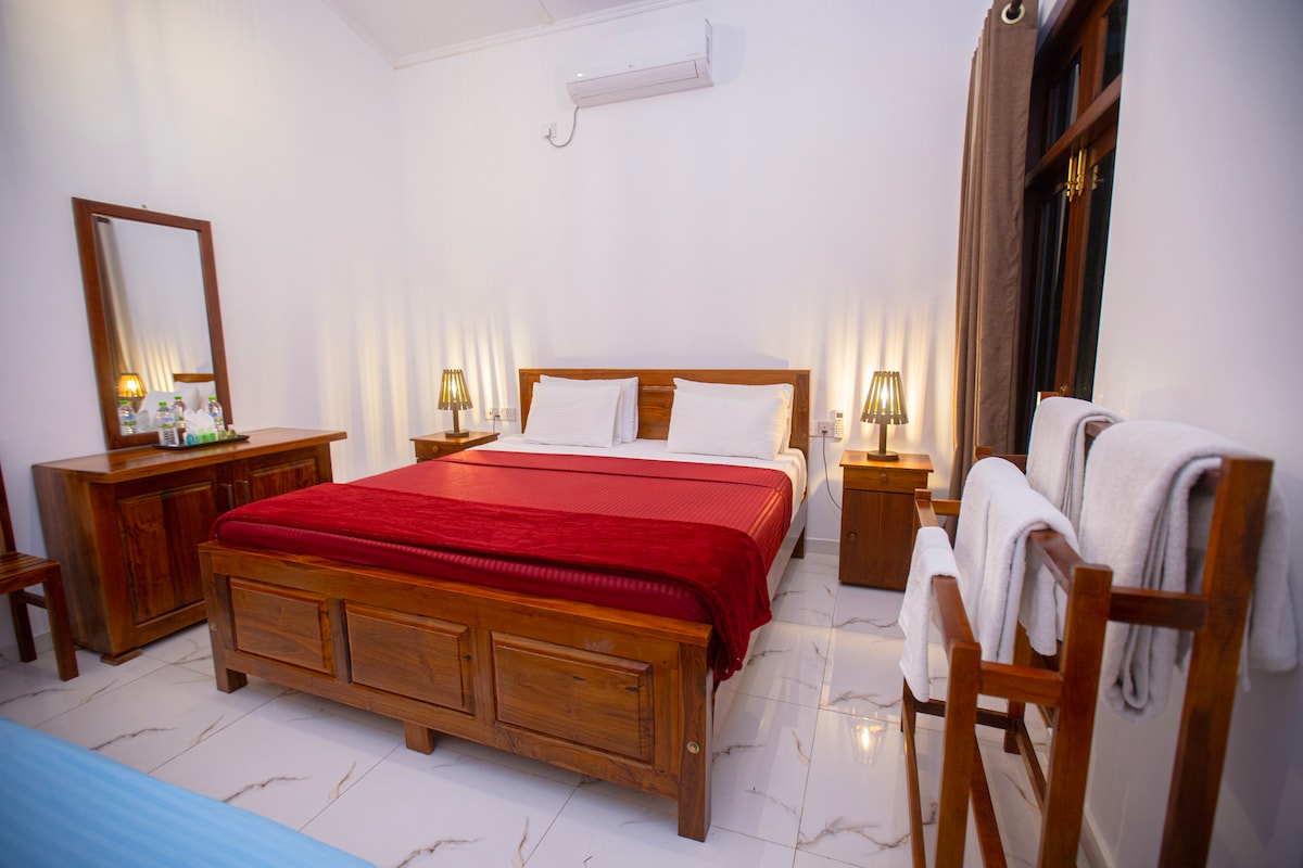 Stay in the heart of Unawatuna, Galle! Our stylish A/C double room offers comfort, convenience, and a relaxing stay. We have 17 well-maintained rooms; your room (ground, 1st, or 2nd floor) is assigned based on availability—notify us early for ground-floor requests. Perfect for couples, solo travelers or families. Nearby: 0.5 km Unawatuna Beach 1.8 km Dalawella/Turtle Beach 2.2 km Dewata Surf Beach 2.3 km Jungle Beach 4.9Km Talpe Rock Pool Beach 5 km Galle Fort 7 km Sea Turtle Farm