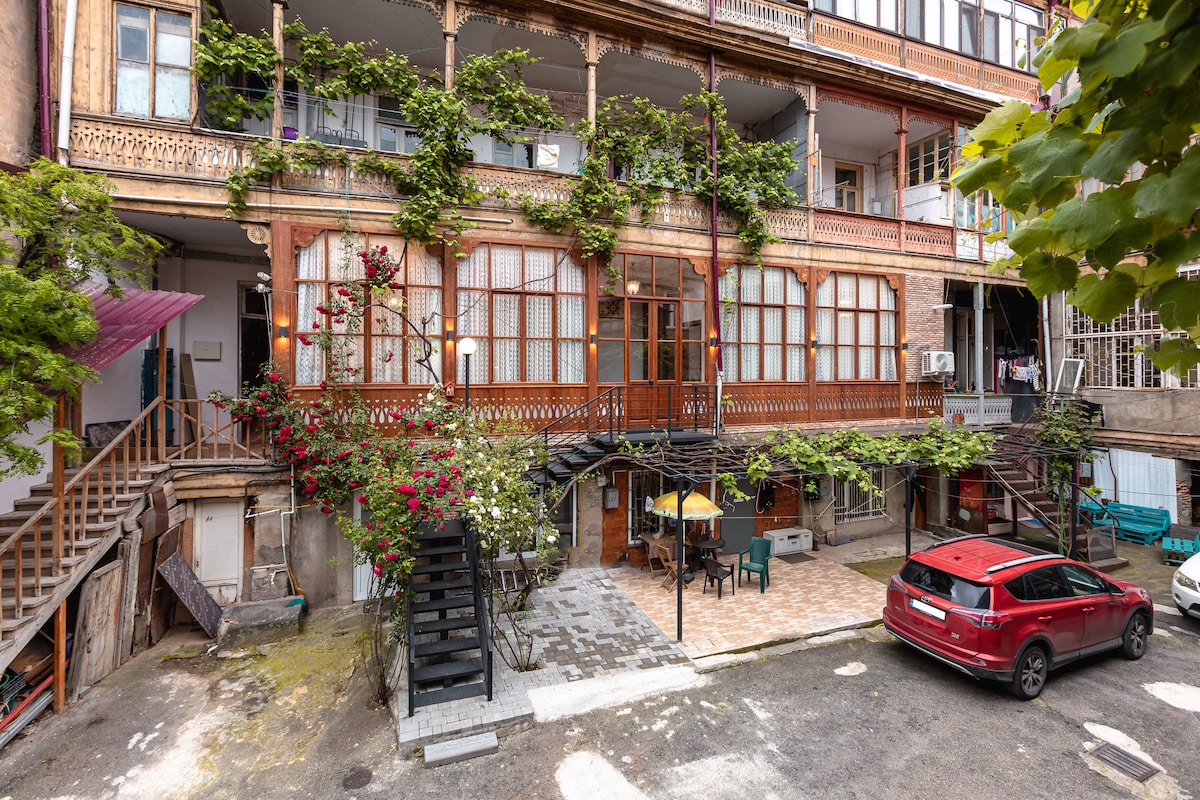 The apartment is located in the center of the historic district, on a very beautiful old street. You will stay in a quiet, typical Georgian courtyard and can enjoy the view from the balcony. The house is old but fully renovated and designed by me. The apartment is bright and comfortable, with a full bathroom (7 sq. m). The apartment offers self check-in. You will receive detailed instructions the day before your arrival, making check-in smooth and easy. I hope you will enjoy your stay.