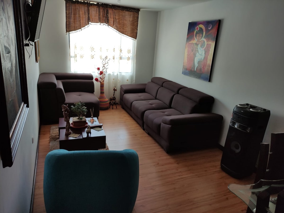 Acogedor apartamento de 3 habitaciones totalmente dotado: camas, ropa de cama, sala-comedor, cocina equipada con utensilios y electrodomésticos. Cuenta con 2 baños, sofá cama, TV smart, agua caliente. Ubicado en 2do piso con ascensor, vigilancia privada y parqueadero cubierto, ubicado cerca del centro en la vía al Santuario de Las Lajas, ideal para familias o grupos que buscan comodidad y ubicación. Reserva y vive una experiencia cómoda, segura y bien ubicada ¡Tu próximo viaje comienza aqui !