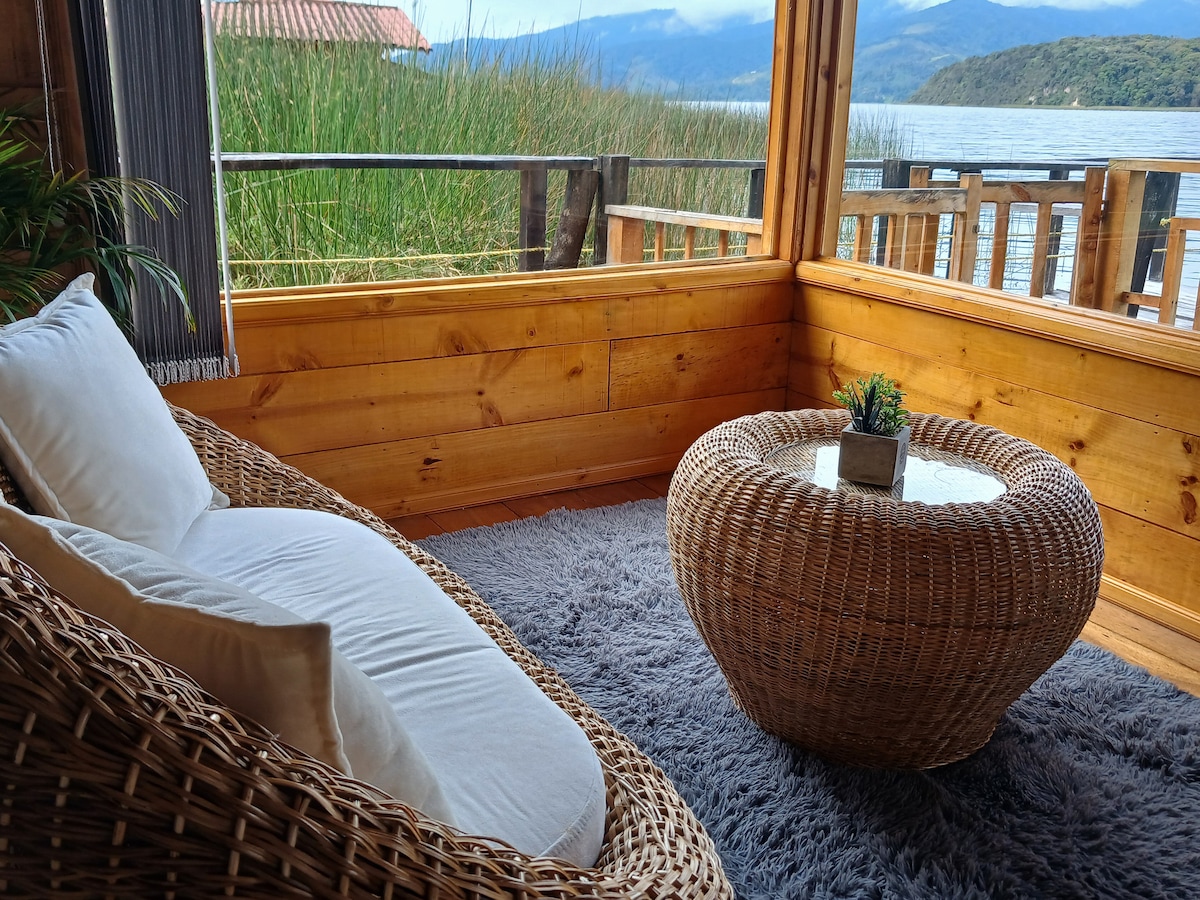 Hemos creado un espacio mágico donde la tranquilidad y la comodidad se unen para ofrecerte una experiencia única. Nuestra cabaña, construida completamente en madera, se encuentra en una ubicación privilegiada a orillas de La Laguna de la Cocha. Podrás disfrutar de un muelle exclusivo, ideal para relajarte y contemplar la belleza del paisaje. Además, nuestra fogata al aire libre te permitirá compartir momentos inolvidables bajo el cielo estrellado, rodeado de una vista inigualable.