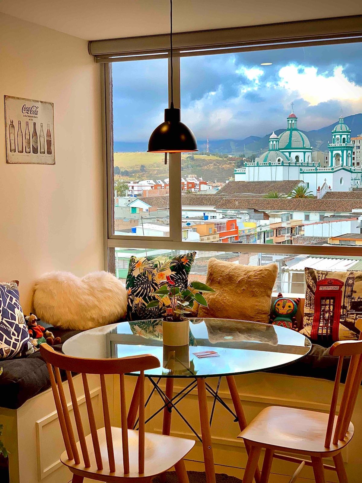 Bluebird es un espacio no convencional de doble altura con mezanine. Se localiza frente a un parque barrial con linda terraza vista hacia Volcán Galeras. Visuales de 360 grados hacia el centro de la ciudad y hacia las montañas. Iluminación y ventilación naturales, detalles de diseño: ideal para concentrarse en actividades personales, de estudio, de trabajo, de descanso o en la conversación tranquila. Lugar ideal para hospedarse en una ciudad y región con atractivos naturales y culturales.