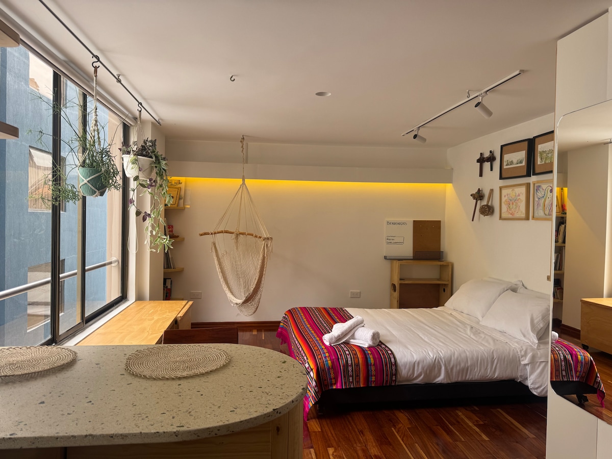 Explore the culture of Pasto from a bright studio apartment with a charming artisanal design. Located in an exclusive neighborhood called Morasurco by the banks of the Pasto River, enjoy a privileged location surrounded by a wide variety of restaurants, close to the Avenue of Students and with easy access to the airport. The studio apartment is fully equipped to provide you with maximum comfort and a relaxing stay.