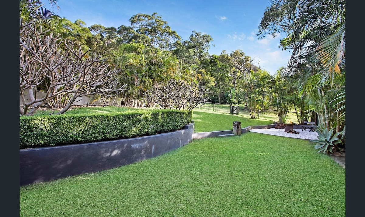 Set in native gardens adjoining bushland, "Haus Ooray" was architecturally designed as a tranquil stylish retreat. Catch glimpses of the Lakes, while in bed, or BBQing on the deck, sitting by the fire pit or in the Cabana, beside a creek. Enjoy local beaches, villages and cafés, paddle on Narrabeen Lakes or explore Sydney, Manly, Garigal and Kuringai Chase National Parks. Mountain bikers have direct access to local mountain bike trails.