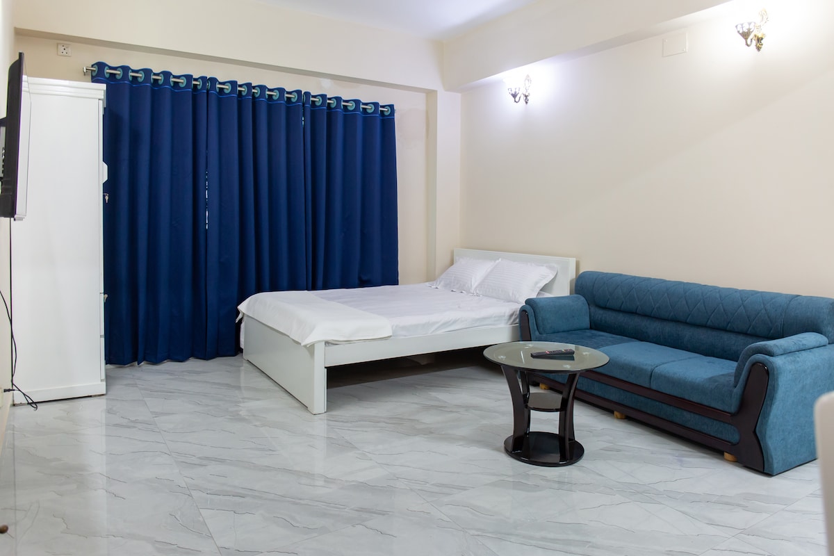 Bring the whole family to this great place with lots of faclities. The unique thing in this unit is there is 1 bed and 1 sofa bed so full family can easily stay here.This new flat is located on rooftop with a Spacious kitchen room,washroom, air conditioning,freezer, dining table. The great thing about this place is everything is so close from my flat.i prefer family and expatriates.