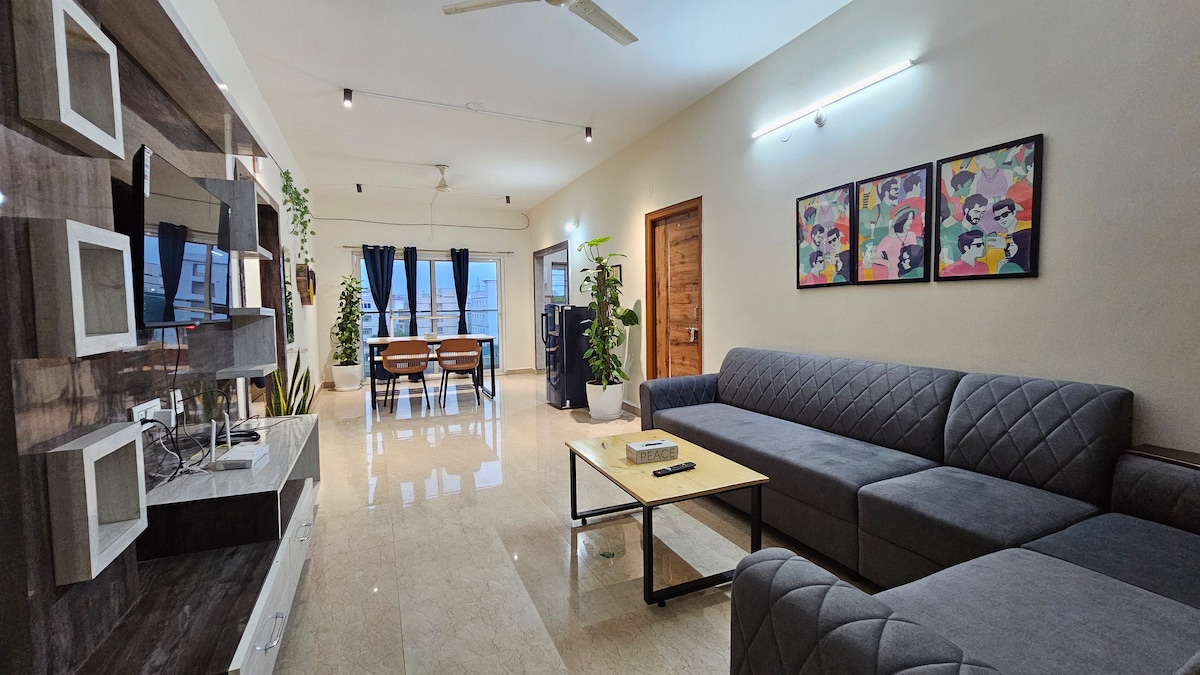 The Beige Cloud – A Luxurious 1BHK Penthouse Experience Above the City. (Couple freindly) Where luxury meets calm - rise above the noise and float in comfort. A meticulously designed penthouse where warm minimalism meets high-end comfort. The Beige Cloud is a private, couple-friendly escape featuring serene interiors, a soothing beige palette, immersive entertainment with a 75-inch TV - perfect for slow living, intimate moments, and a peaceful stay for couples, or business travelers.