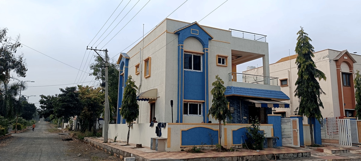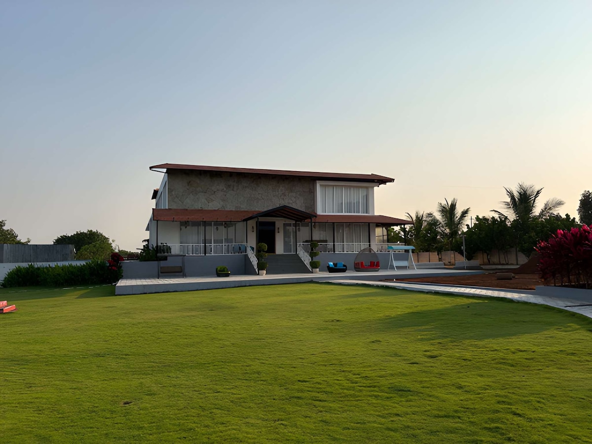 A PRIVATE RESORT STAY EXPERIENCE! Reconnect with nature at this unforgettable escape. A serene and homely 5000 sq ft villa with a swimming pool, lawn and children's play area nestled in an 8 acre mango farm. We take reservations for family stays, parties, events, weekend getaways, movie shootings, etc. Outside food is prohibited.