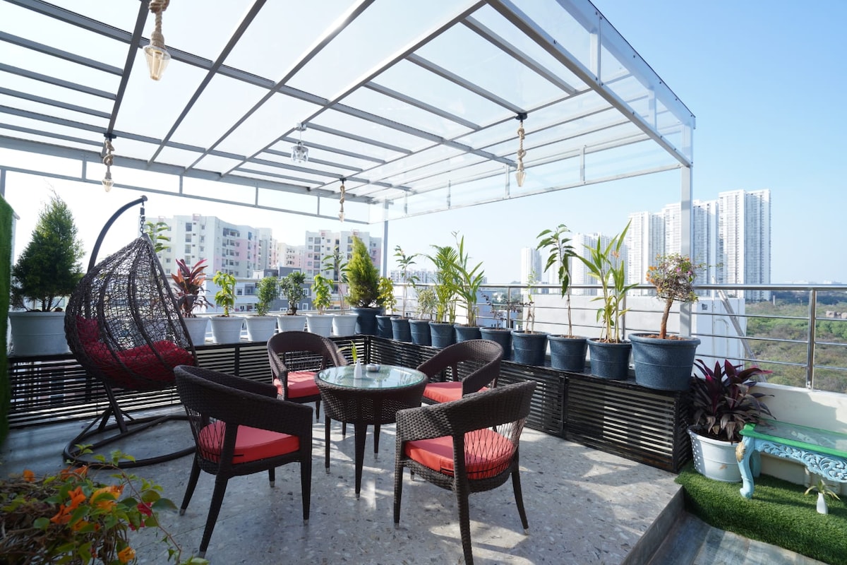 Escape into a luxurious retreat at Atlas Homes Penthouse, a 900 sq. ft. suite perched above Hyderabad’s Hitech City. Just minutes from Cyber Towers, Forum Mall, and Indu Annexe, this one-of-a-kind Jacuzzi Penthouse blends indulgence with comfort, making it ideal for couples, solo travelers, and families.