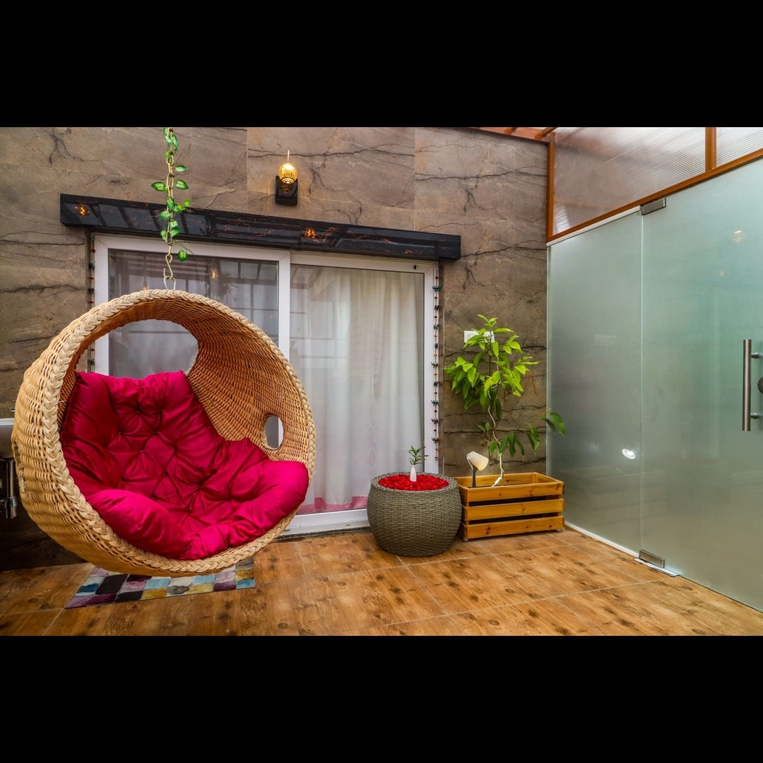 Relax with the whole family at this peaceful place to stay. The impressive Garden View welcomes you to a 3,500+ square-foot layout. Once inside, the huge SONY 4k TV in the hall makes it perfect for Movies. Three AC bedrooms, 1 Non AC Bedroom, and 1 AC in Living area, with a Surprised spacious sit-out area and Puja room.
