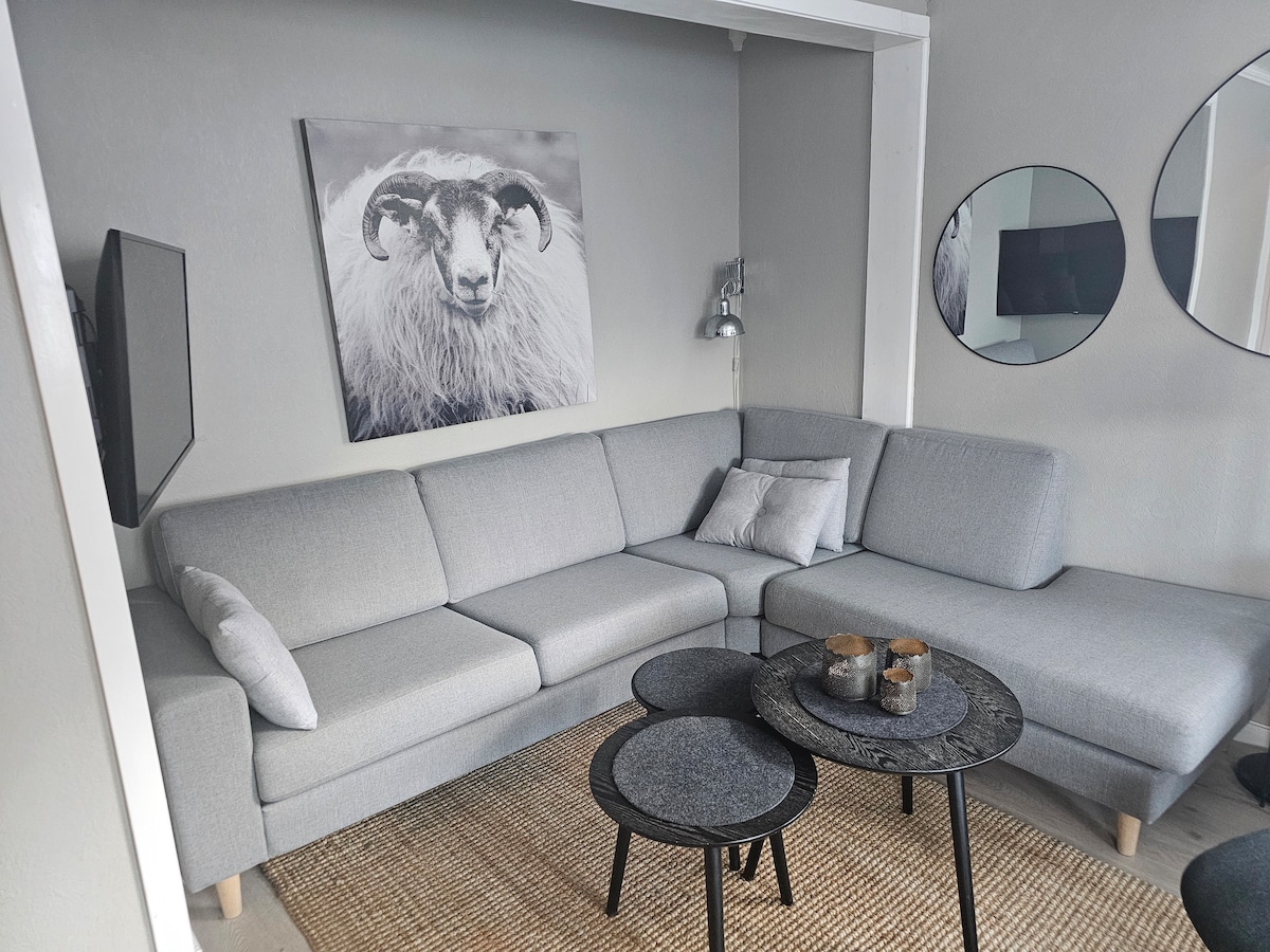 Velkommen til en hyggelig og praktisk leilighet på 52 kvm. Leiligheten består av et fullt utstyrt kjøkken, en liten gang, et soverom, bad og en romslig stue med sovesofa som gir sengeplass til totalt 4 personer. Fra gangen har du tilgang til en balkong med utemøbler – perfekt for morgenkaffe eller en rolig kveld. Merk at leiligheten har en mindre varmtvannsbereder. Dersom dere er flere enn to personer, anbefales det å vente litt mellom hver dusj slik at varmtvannet rekker å varmes opp igjen.