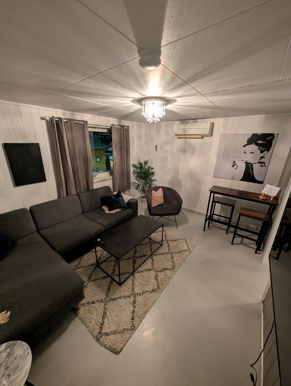 Velkommen til vår sokkelleilighet, perfekt for både avslapning og eventyr! Denne perlen ligger sentralt, bare et steinkast fra skistadion/marka og gangavstand til sentrum. I vintermånedene kan du oppleve det magiske nordlyset rett utenfor døren. Nyt en kopp kaffe på plattingen foran leiligheten, eller slapp av på den store gressplenen. Her får du både komfort og naturopplevelser, ideelt for familier eller grupper som ønsker å utforske området!