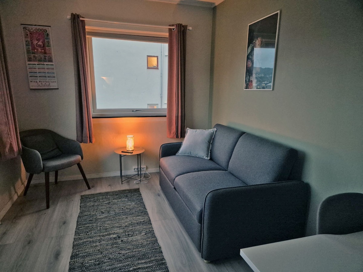 Sentrumsnært, gratis parkering. Perfekt for par eller enslige. Kort avstand til sentrum med kjøpesenter, cafe og butikker. Leiligheten har et soverom med queen-size seng og garderobe. Bad med gulvvarme, dusj og vaskemaskin. Varmtvann i dusj. Gang med varmekabler Fullt utstyrt kjøkken, med hvitevarer. Egen inngang med kodelås. Fiber internet. 65" smart tv med RiksTV og strømme funksjon. Nært : Narvikfjellet Dagligvarebutikk Togstasjon Flybuss