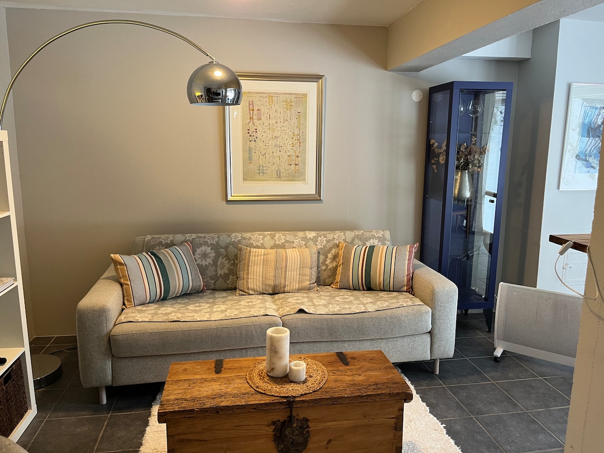 Velkommen til vår sokkelleilighet, perfekt for både avslapning og eventyr! Denne perlen ligger sentralt, bare et steinkast fra skistadion/marka og gangavstand til sentrum. I vintermånedene kan du oppleve det magiske nordlyset rett utenfor døren. Nyt en kopp kaffe på plattingen foran leiligheten, eller slapp av på den store gressplenen. Her får du både komfort og naturopplevelser, ideelt for familier eller grupper som ønsker å utforske området!
