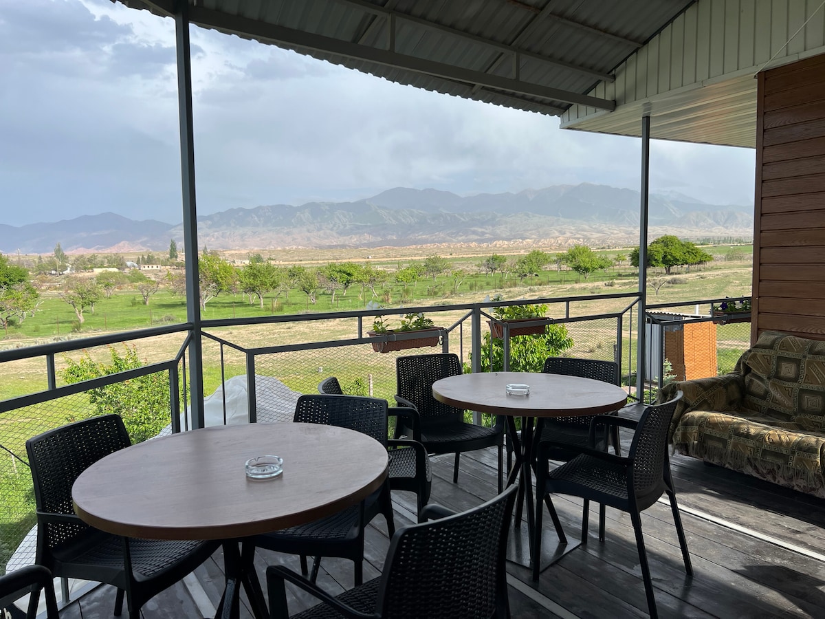We’re excited to host you and share the beauty of Kazarman with you. Our location is ideal for outdoor enthusiasts. Take a hike in the mountains, fishing, or you can also take a trip to nearby petroglyph site and national park “Saimaluu Tash”. The address is: Тагай 7 or will pop up as “Пастбищное агенство». Book your stay today and experience Kyrgyzstan like a local!