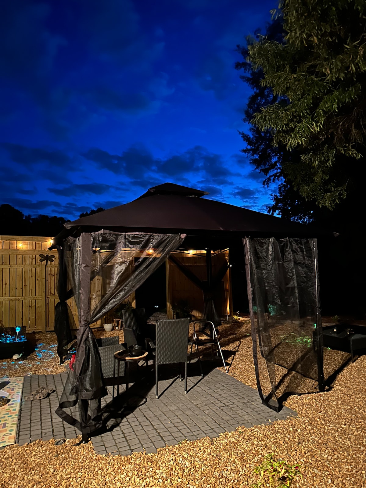 Three bedroom, 2 1/2 bath home with large fenced in backyard. Outdoor patio with all you need to cook outside. Including outdoor sink with hot and cold water only available in the summer. Gas fire pit table on the patio and wood burning fire pit in the yard. Above ground pool available seasonally. Escape to this retro retreat.