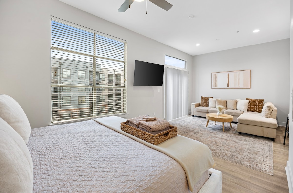 Experience the best of city living in our modern minimalist retreat! Pets Stay Free Enjoy breathtaking views of the city skyline from the comfort of our sleek and stylish high-rise apartment. Located in the heart of downtown, you'll be steps away from top attractions, trendy restaurants, and vibrant bars. Our apt. is the perfect haven for couples, solo travelers, and business professionals seeking a stylish and convenient base for their city adventures.
