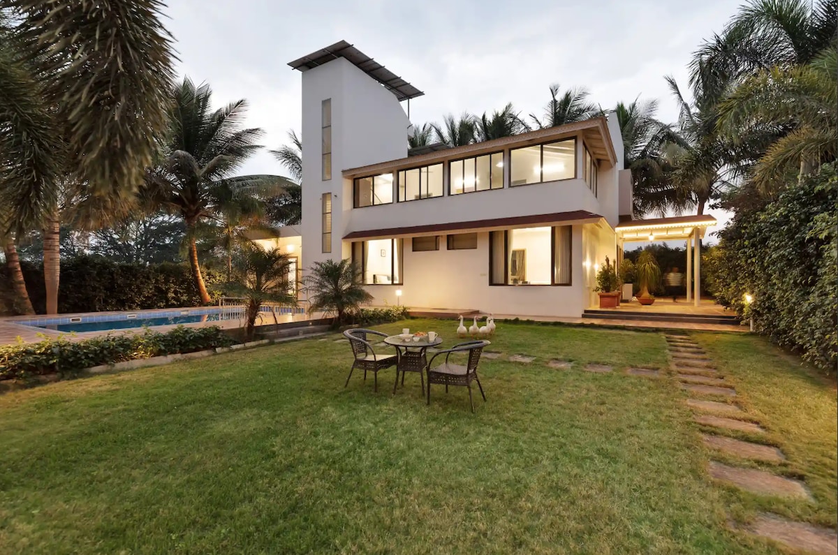 4卧室-StayVista@Casa Del Verde,带泳池、草坪和篝火