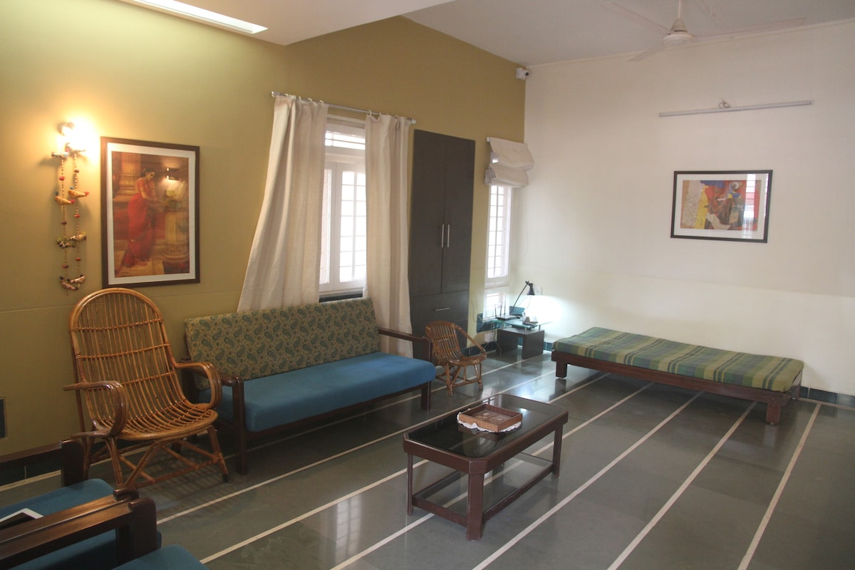 Forget your worries in this spacious and serene house! Welcome to a beautiful, cozy space filled with natural light — it’s peaceful, sunny, and perfect for relaxing. You’ll love spending time in the garden, whether it’s sipping your morning coffee or just enjoying some quiet fresh air. Since it is a Residential Area, please make sure that you don’t disturb the neighbours . *** We have 2 more listings for the same bunglow - Vatsalya I for 6 guests and Vatsalya Studio Apartment for 3 guests. ***