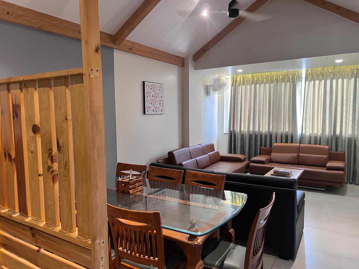 Relax with the whole family at this peaceful place to stay. A lovely 2 BR property in the midst of nature. 2 King-size beds (sleeps 4). 4 extra mattresses. Air-conditioning in both bedrooms and living room. A kitchenette consisting of tea-coffee maker, micro-wave oven, refrigerator, a set of 12 plates, glasses etc. TV+DTH. Lush 3000 sq ft of lawns. Free Parking for 6 cars. Outdoor sit-outs with beautiful views. Indoor Board Games. Bluetooth Karaoke Speaker. Inverter back-up for lighting load