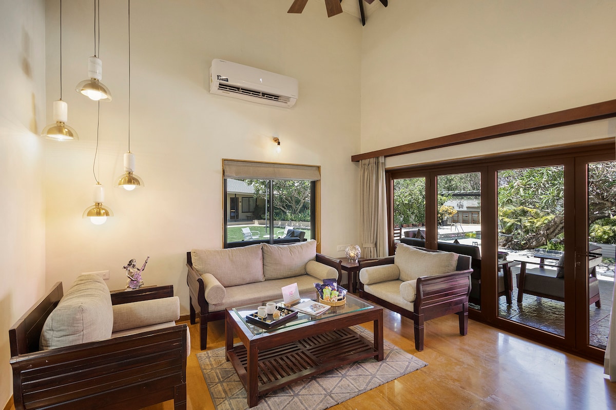 Elegant 3BHK Luxury Bungalow with Garden & Modern Amenities Ideally located near Jain Mandir, Mahalaxmi Mandir, Amchi Mati Amcha Mansa. Each bedroom is equipped with geyser, air conditioning. A fully equipped kitchen, featuring a refrigerator, and essential appliances. A TV is also provided for entertainment, ensuring a comfortable and homely experience. Step outside into the lush garden, filled with vibrant plants and blooming flowers. Ideal for families and groups.