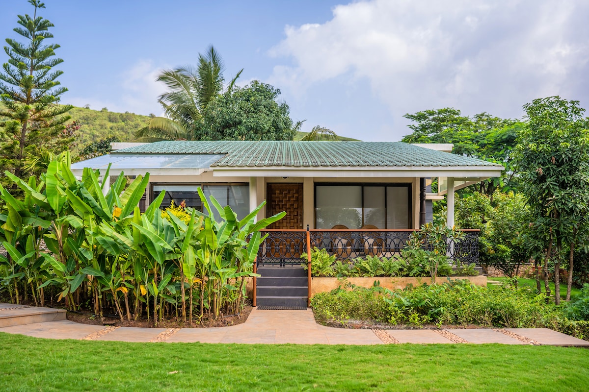 CCC offers a unique blend of city convenience and nature's peace, designed for both families and senior citizens. Enjoy accessible, comfortable accommodations surrounded by scenic gardens, walking paths, and fresh air. One bedroom on Ground floor cottage. farm flair of County side & urban life, Famous Winery SulaJust 5 minutes Drive, Perfect retreat for quality family time or a tranquil escape for seniors. Embrace nature, comfort, and togetherness in a setting where all generations can unwind