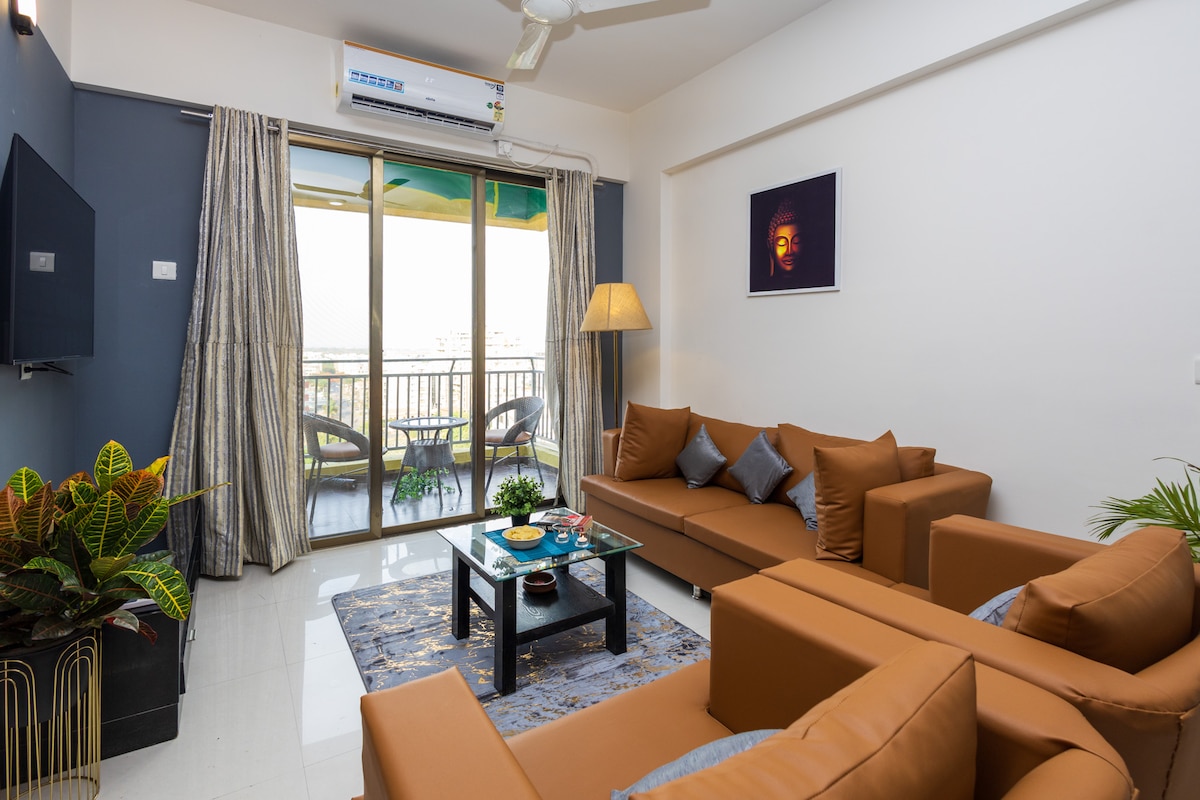 Welcome to our luxurious 2 BHK fully furnished service apartment! NO LOCAL ID Please read the additional rules under “your property & Guest Access.” Enjoy a spacious living area with plush seating and high-speed Wi-Fi, a modern kitchen with reheating appliances only , and comfortable bedrooms with premium linens. Stylish bathrooms with high-end toiletries. Amenities include daily housekeeping, air conditioning, 24/7 security, and parking. Located near shopping and dining for your convenience