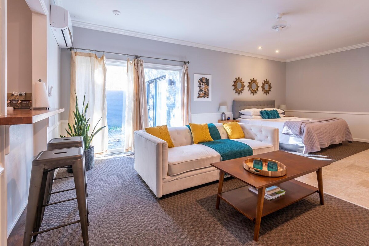 Come enjoy the best Nashville has to offer from a home base you will love to return to in the evenings. Or stay in all day and enjoy the lofted well-lit space, or sit on the patio and watch the people on the Ooey Gooey terrace below. You will be within walking distance of all of downtown Nashville, with your own parking space, and every home convenience you might want. Enjoy a free cinnamon roll with a 2 night stay! (Closed Monday & Tuesday)