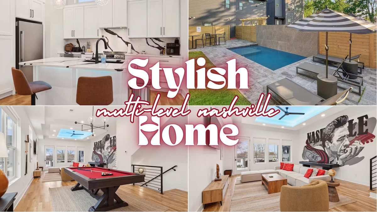 ♛ Top Host ▔▔▔▔▔▔▔▔▔▔▔▔▔▔▔▔▔▔▔▔▔▔ Private Luxury Oasis ★ Pool & Spa ★ Heart of Nashville Step into your private luxury retreat in the heart of Music City, Nashville. This sprawling 5,200 sq ft mansion offers unmatched elegance and comfort. Enjoy luxurious amenities including a private outdoor oasis with a heated pool, hot tub, and fire pit. Perfectly located just moments from vibrant neighborhoods like The Gulch and Downtown, this home ensures a convenient and exceptional stay. ⋯