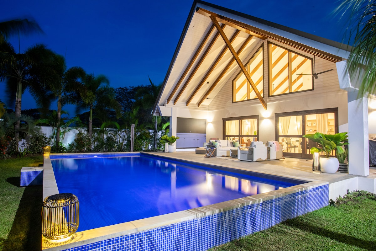 Enjoy this spacious Villa with high vaulted ceilings, 2 en-suite rooms with both indoor and outdoor showers in room-you choose! The Perfect Villa for-family, a couple(s), or solo traveler! Large pool, volleyball net, golf cart, corn hole, Stand Up Paddle Board, Bikes-Tons of fun for all! Full time caretaker for all your needs or privacy if you need it. Tranquil, secluded if you want to be, or stroll down to the local marina, restaurant and resort! We have a 2nd villa available as well ask!