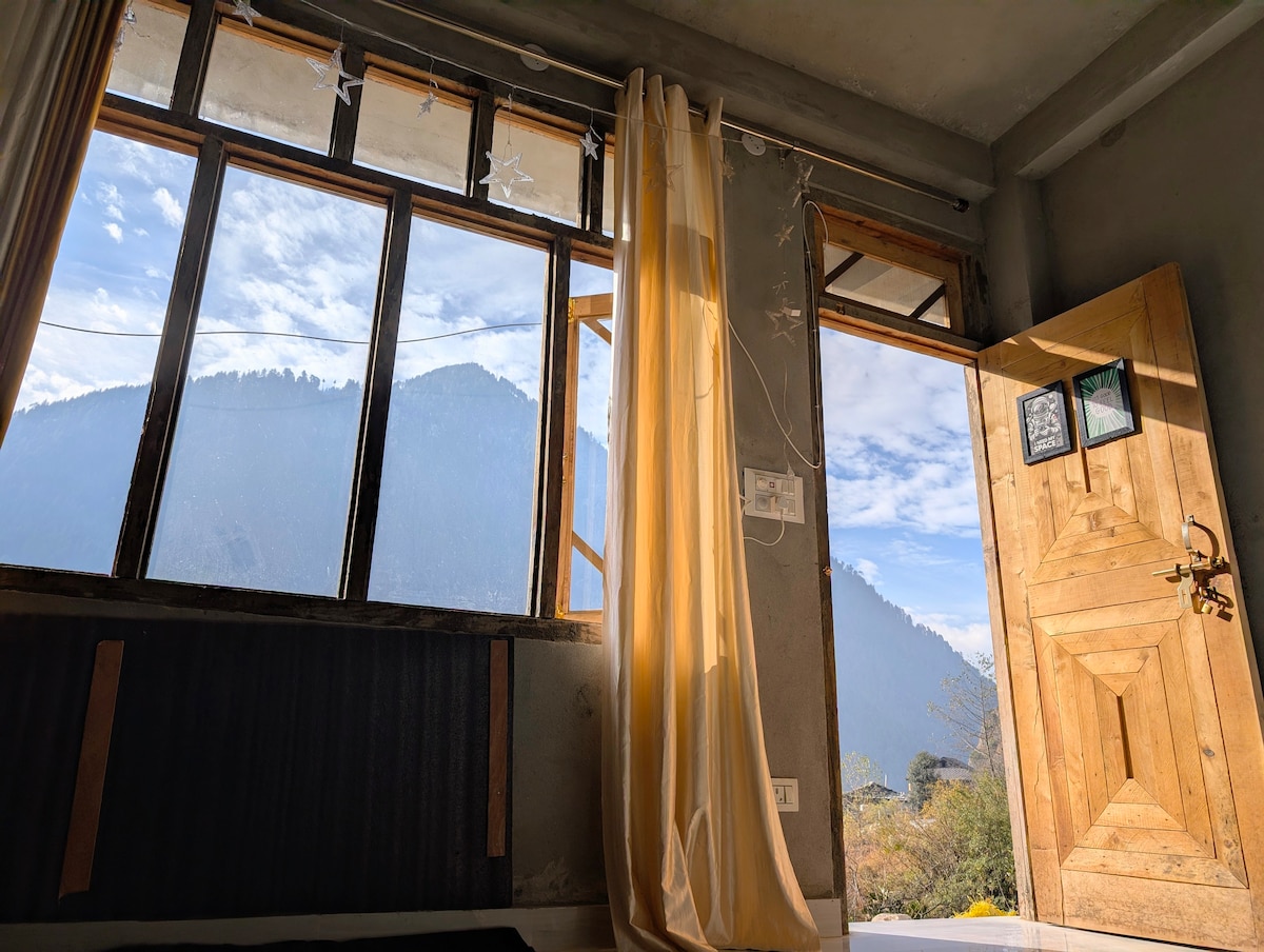 Forget your worries in this spacious and serene space. It’s gonna be an experience stay, no property in Manali can easily match our views. Basically mall road is approximately 30 minutes drive from the stay. The property is surrounded by 360• surround mountain views and river front with ample amount of parking. We don’t not allow cooking of non veg food in the kitchen tho you can order it from outside if required.
